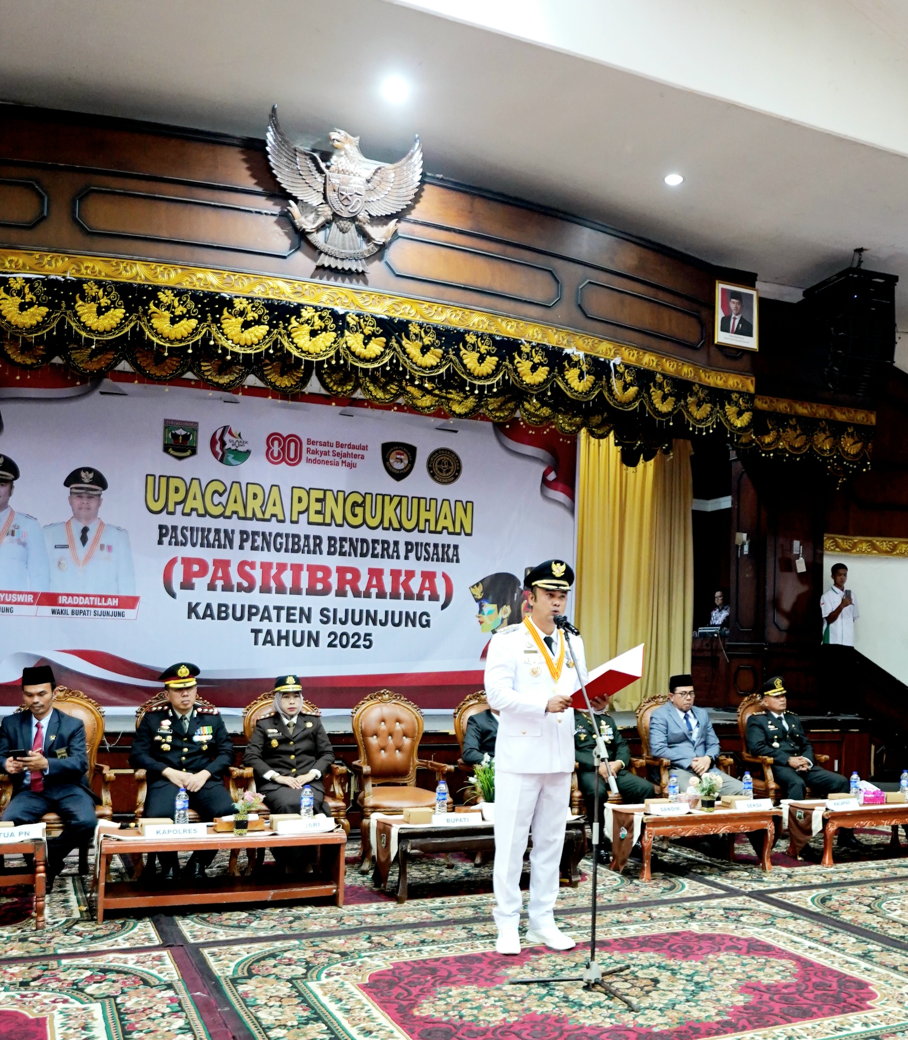 Bupati Sijunjung, Benny Dwifa Yuswir, SSTP, M.Si Sutan Gumilang mengukuhkan 56 orang anggota Pasukan Pengibar Bendera Pusaka (Paskibraka) Kabupaten Sijunjung tahun 2025. Upacara pengukuhan digelar di Gedung Pertemuan Pancasila Muaro Sijunjung pada Rabu 13 Agustus… PENGUKUHAN PASKIBRAKA TAHUN 2025